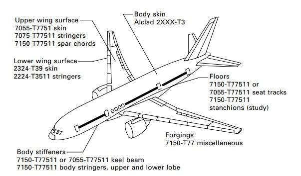 ALUMINIUM ALLOYSSCRIPTS Aircraft aluminium: rolled, extruded and forged admin 21340 Views Aluminium is the material of choice for most aircraft structures. High-strength aluminium alloy is the most used material for the