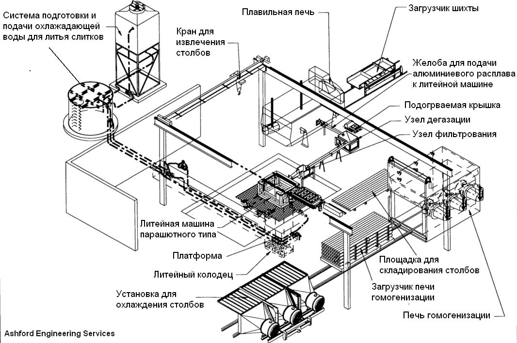 Typical aluminium extrusion remelt shop shown schematicaly on Figure 1. It have the following items of equipment: