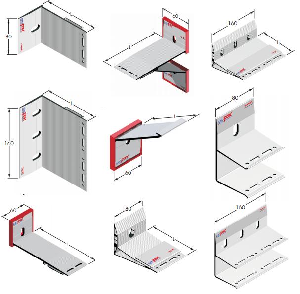 - aluminium brackets of various shapes and sizes;