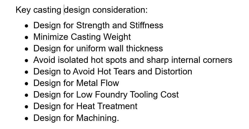 Casting design, including aluminium casting design, involves the specification of the overall configuration of the casting as well as the detail geometry of the various features that comprise it. The goal of casting design is: