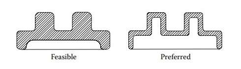 When heavy sections cannot be avoided, then risers or other costly foundry remedies must often be used. A far preferable approach is to avoid heavy sections by designing the casting to have a uniform wall thickness as it is shown in Figure 4.