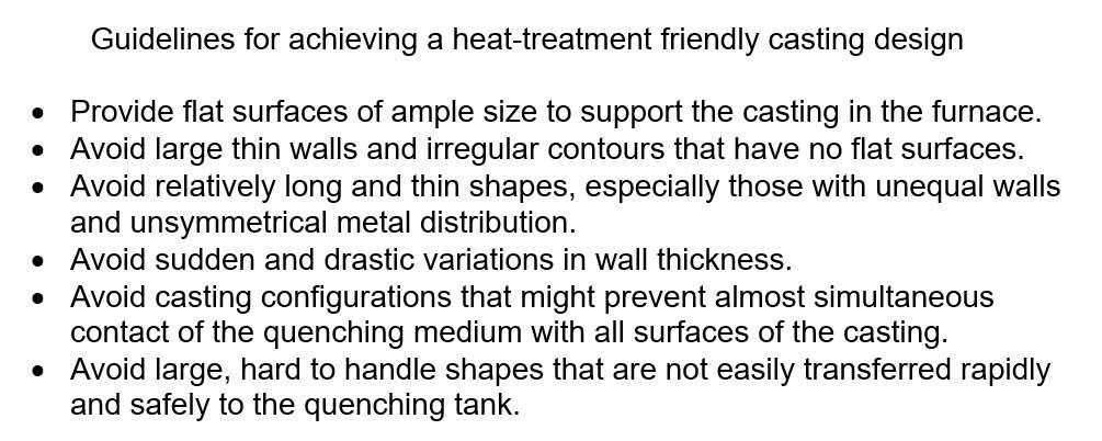 Guidelines for achieving a heat-treatment friendly casting design are shown in this figure. When these guidelines cannot be followed, the designer is