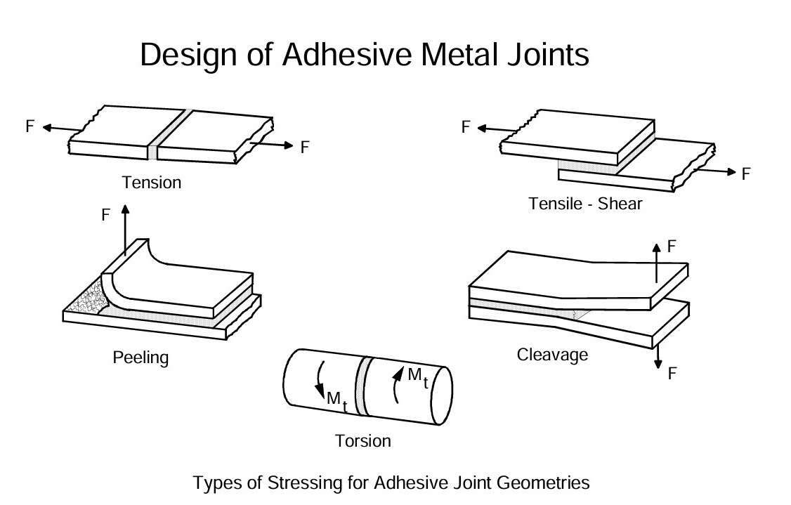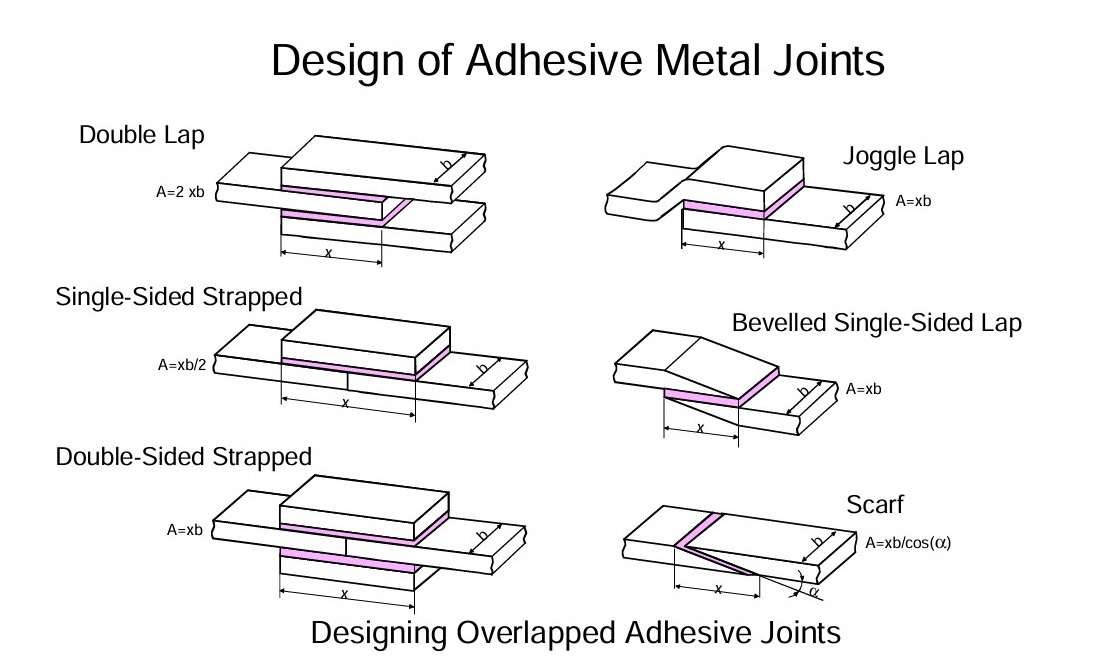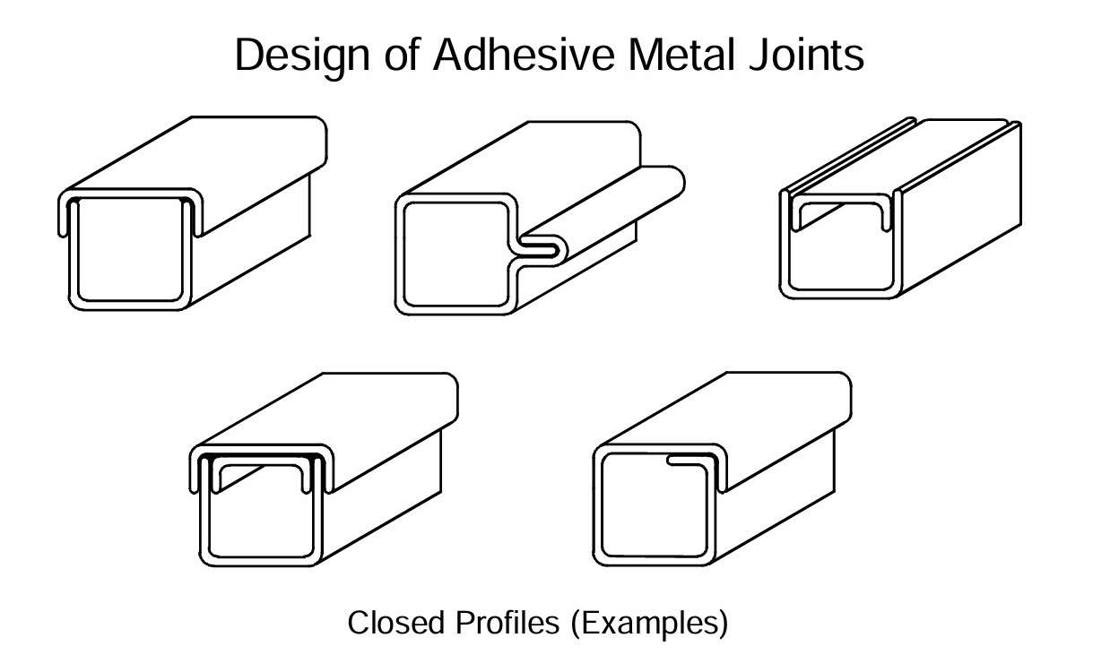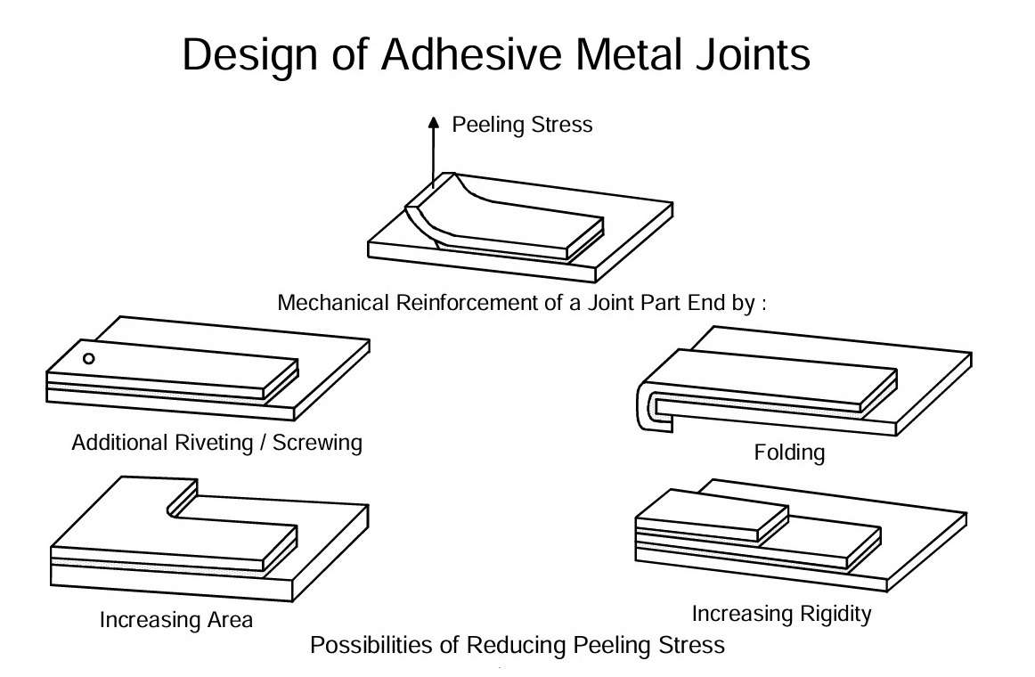 Design types which avoid peeling stresses in adhesive joints of metals are illustrated in Figure 2.