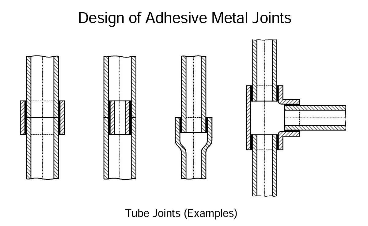 While joining tubes of different coefficients of thermal expansion adhesively, the tube with the larger expansion should be designed to be on the outside.Figure 6 – Tube joints