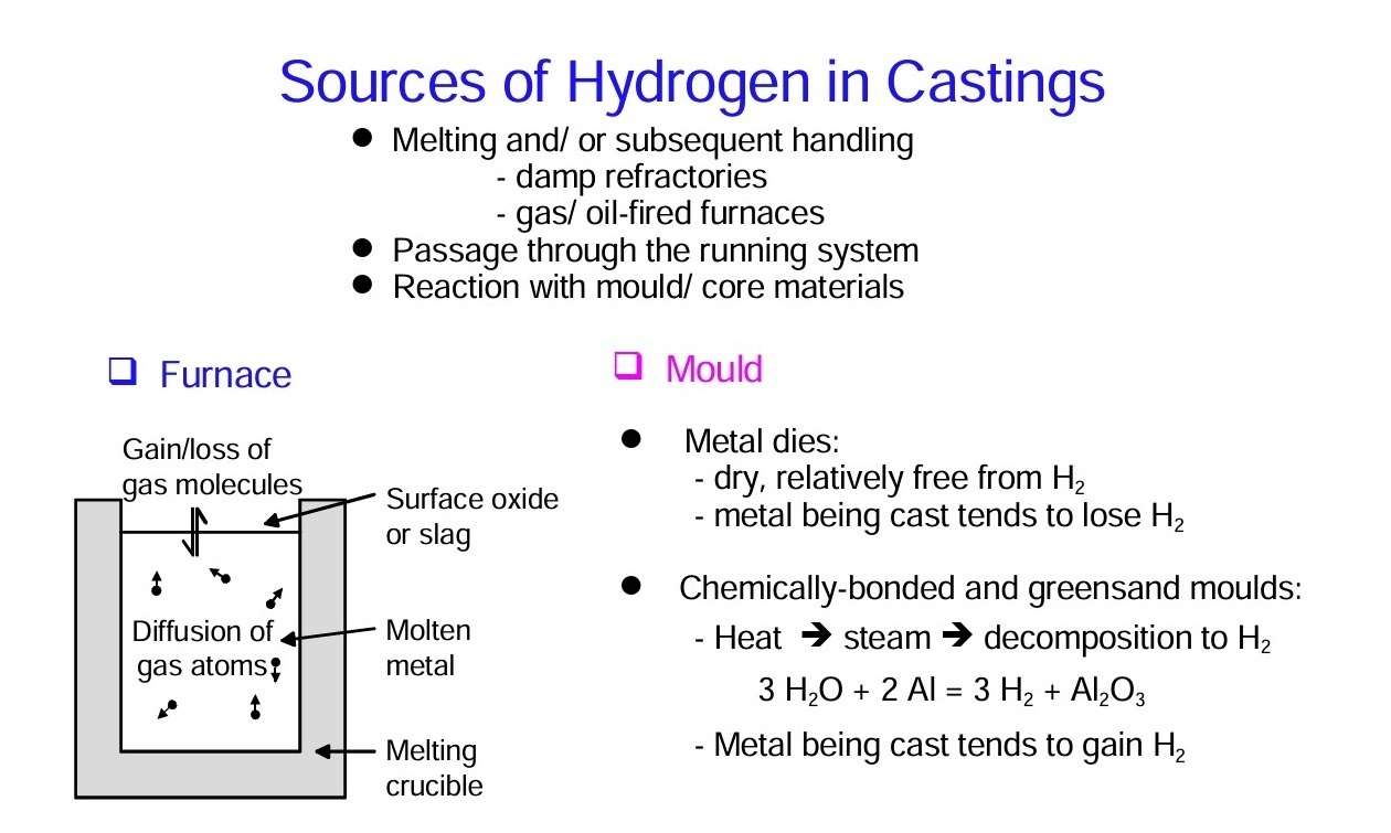 Figure 3 – Sourcrs of hydrogen in castings