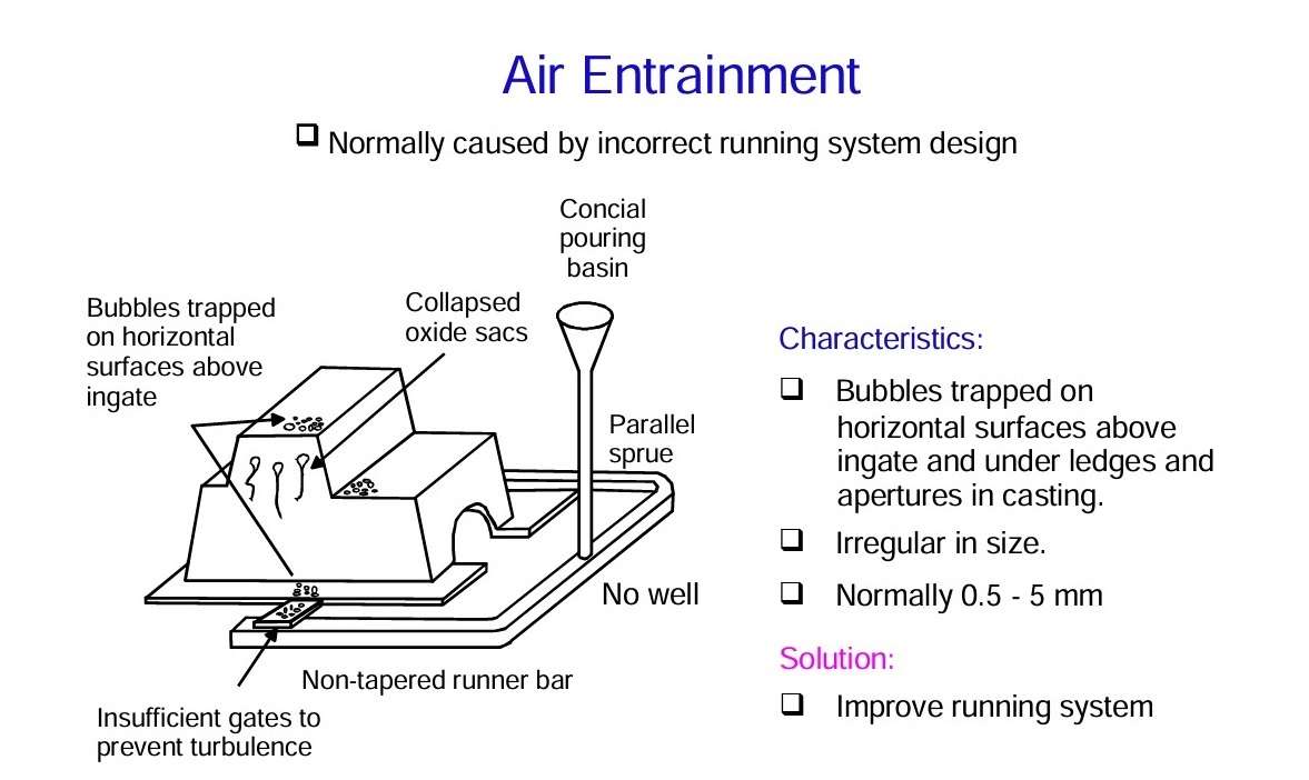 - Secondly, if the mould is filled under very poor conditions, air can be entrained in the metal stream and then trapped as the metal solidifies.