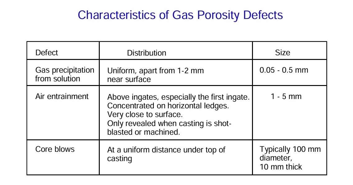 These different types of gas porosity defect vary in their size, distribution, distance below the casting surface and morphology.
