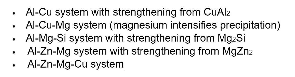 The major aluminium alloy systems with precipitation hardening are shown in Figure 2.