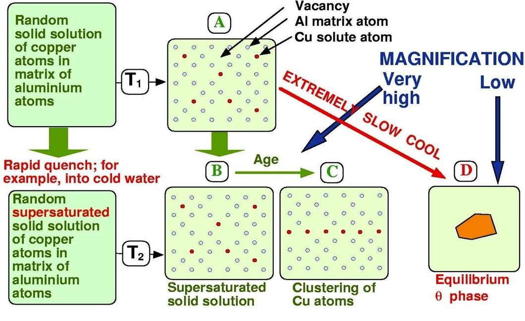 Heat treatment to increase strength of aluminium alloys is a three-step process (Figure 4):