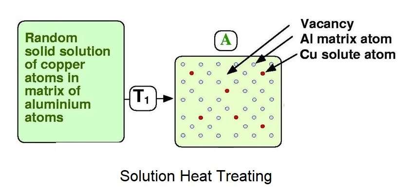 Its objective is to take into solid solution the maximum practical amounts of the soluble hardening elements in the alloy. The process consists of soaking the alloy at a temperature sufficiently high and for a time long enough to achieve a nearly homogeneous solid solution.