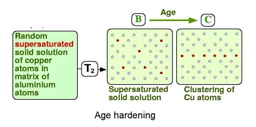After solution treatment and quenching hardening is achieved either at room temperature (natural aging) or with a precipitation heat treatment (artificial aging).