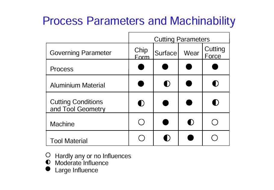Machinability is not a material property which can be defined using a single characteristic parameter. It is, in fact, a complex technological term. The machinability depends both on the physical and chemical properties of the aluminium as well on the fabrication process used to produce it.