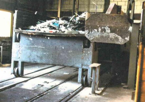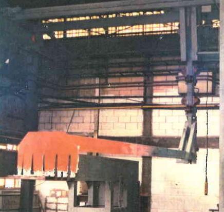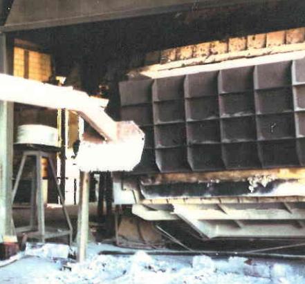 In small furnaces, slag is removed from the surface of the metal using a long hand tool with a scraper at the end turned 90º (see Figure 1). The foundry worker collects slag from the surface of the melt and directs it through the furnace window into the slag container, which stands directly below the loading window. Figure 2 below shows mechanized deslag devices for large furnaces.