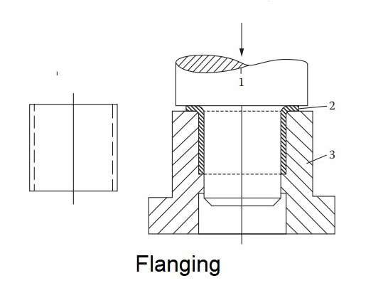 In this process, a flange is formed on a hollow component by means of a punch and a die.