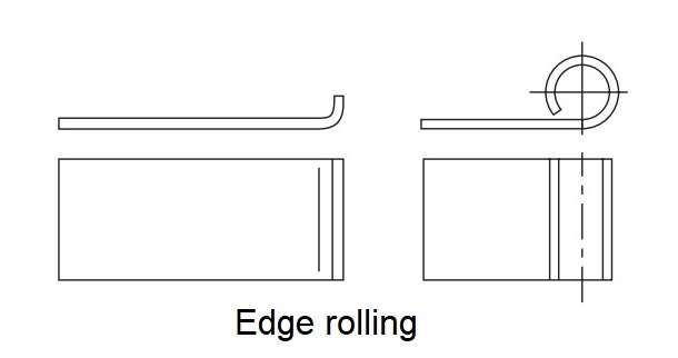 In this process, the edge of a sheet or a sheet component is rolled back upon itself, usually by means of a punch and guide to give rigidity or a better appearance to an article.