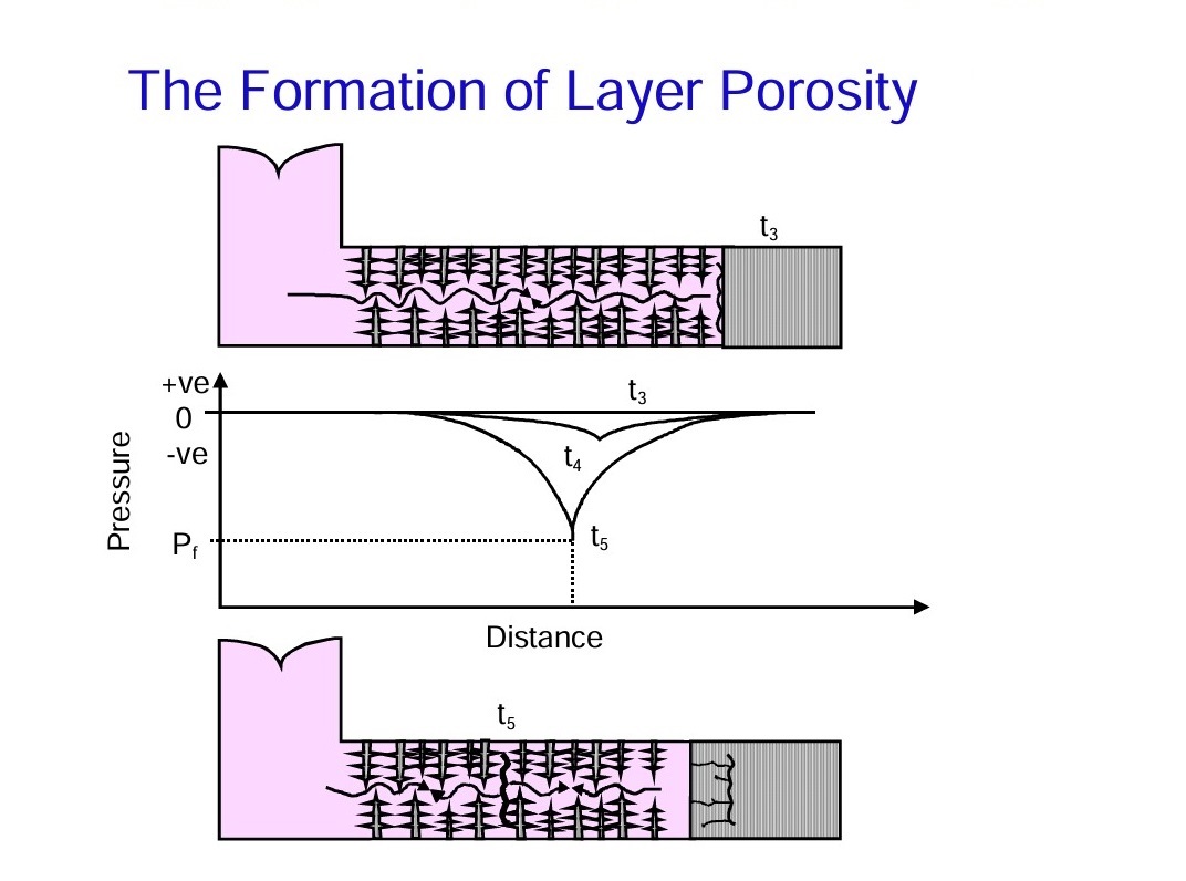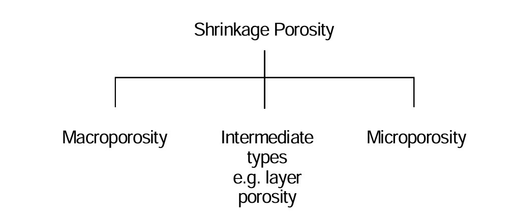 The defect “Shrinkage porosity” is conventionally sub-divided into macroporosity and microporosity. It is also possible to identify intermediate types of shrinkage porosity, notably layer porosity in long freezing range alloys.