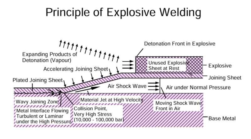 SCRIPTSWELDING Explosive Welding of Aluminium admin 343 Views Principle of Explosive Welding Shock waves (3,000 to 9,000 m/s) can produce pressures of up to 6 x 106 N/cm2.